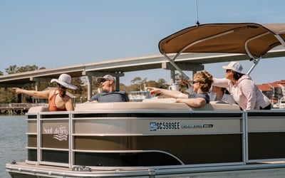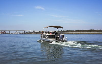 Cruise Hilton Head's tranquil waterways with a modern pontoon that seats up to 10. Chart your own route for swimming, dolphin spotting, or a relaxed picnic on the water.