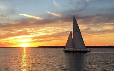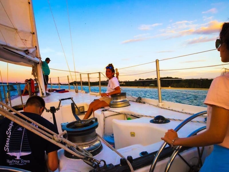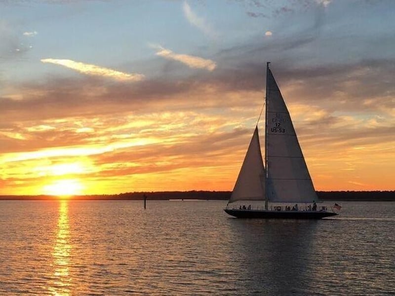 Watch Hilton Head's vibrant sunset while relaxing or helping crew aboard the historic Stars & Stripes