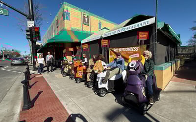 Explore historic downtown Napa on fun, ADA-compliant Rydable scooters. Hear engaging stories from wild west roots to Wine Country today as you cruise past landmarks and the Oxbow Bypass.