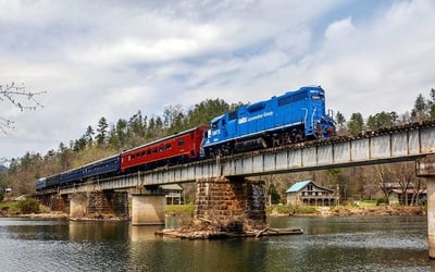 Climb aboard a historic diesel-powered train for a relaxing 50-mile loop through the lower Hiwassee River Gorge. This 4-hour round trip reveals sweeping views of Tennessee's rolling countryside, especially vibrant in late summer and fall.