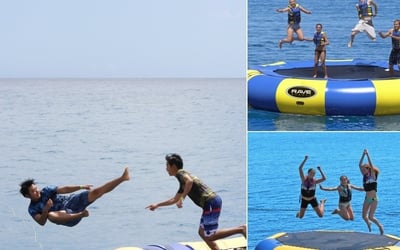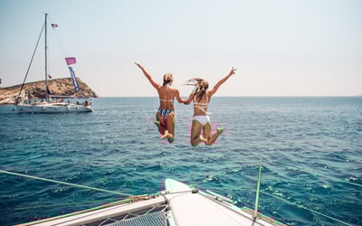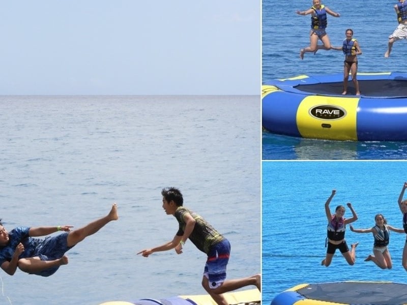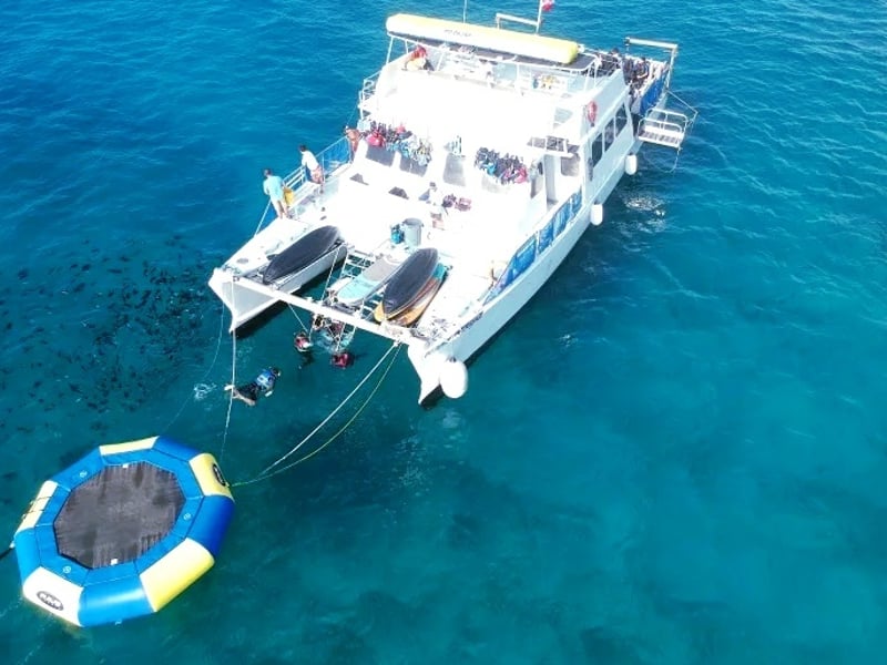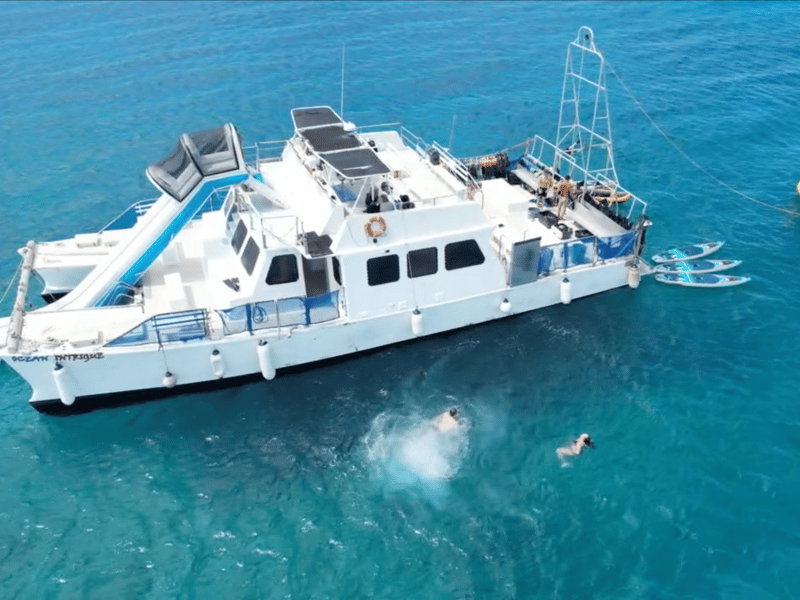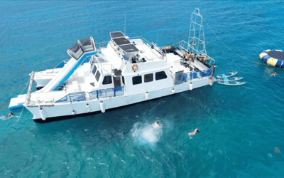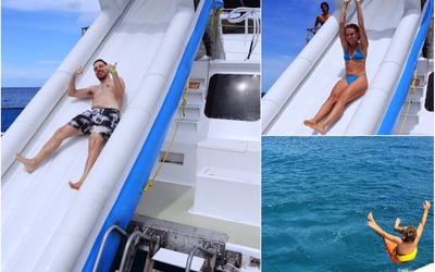 Charter a spacious vessel for snorkeling, waterslide, trampoline, kayaks, and SUPs on a customizable private outing