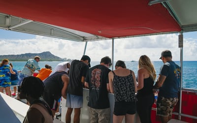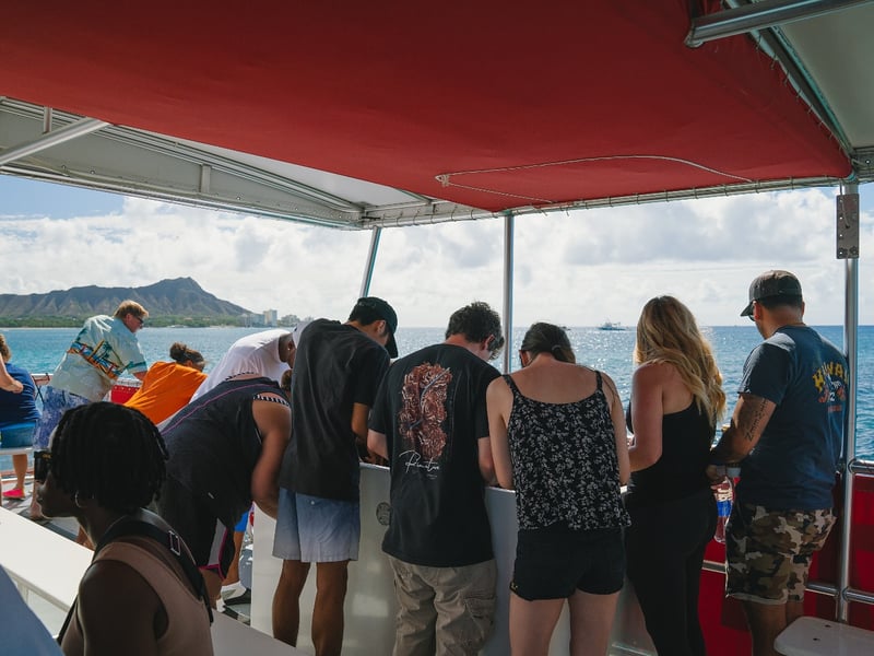 The crew here really makes the experience. Names like Austin and Sofia, Brandon and Stone, and Jim and Keiko come up repeatedly, with reviewers gushing about how they transformed what could be just a boat ride into something memorable. These aren't just drivers taking you out on the water – they're genuinely enthusiastic guides who navigate to the best wildlife spots, snap plenty of photos for you, and keep everyone entertained with good music and local knowledge. The sunset cruise seems to be the most popular option, and people absolutely rave about it. You'll likely spot sea turtles (nearly guaranteed based on these reviews), tropical fish through the glass bottom, and if you're lucky, dolphins or seals. The fish feeding is a highlight, and there's a fun BYOB policy if you want to bring drinks along. That said, there's one potential letdown worth noting. At least one person mentioned the description promised a swimming stop that never happened, which was disappointing enough to dock a star from an otherwise great experience. Another reviewer felt the marine life viewing was pretty dependent on the crew chumming the water, though this seems to be a minority opinion. Overall though, the vibe is overwhelmingly positive – families love it, couples call it unforgettable, and multiple people say if you can only do one thing in Honolulu, this should be it. The combination of knowledgeable crew, reliable wildlife sightings, and that magical Hawaiian sunset seems to deliver exactly what visitors are hoping for.