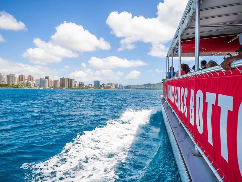 Charter a private glass-bottom boat in Honolulu for your group or event. Ride a 50-foot power catamaran and enjoy coastal views above and below the surface.