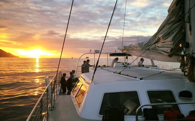 Glide along Oahu's south shore aboard a state-of-the-art catamaran as the sun dips behind iconic Diamond Head. Toast the moment with tropical cocktails and soak up panoramic views of Honolulu and Waikiki.