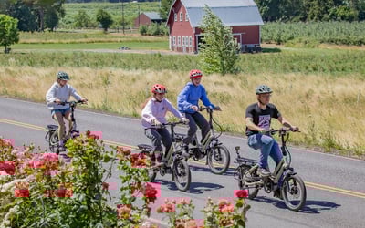 Cruise Hood River on a pedal-assist e-bike for a flexible all-day ride. Pick up your bike at the downtown train station and explore paved routes at your own pace.