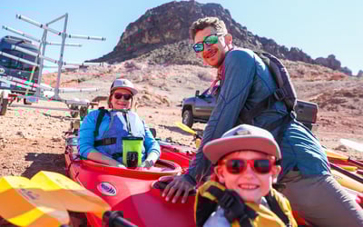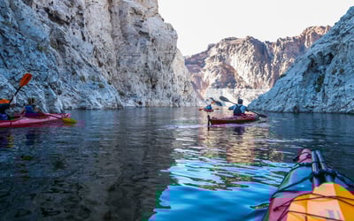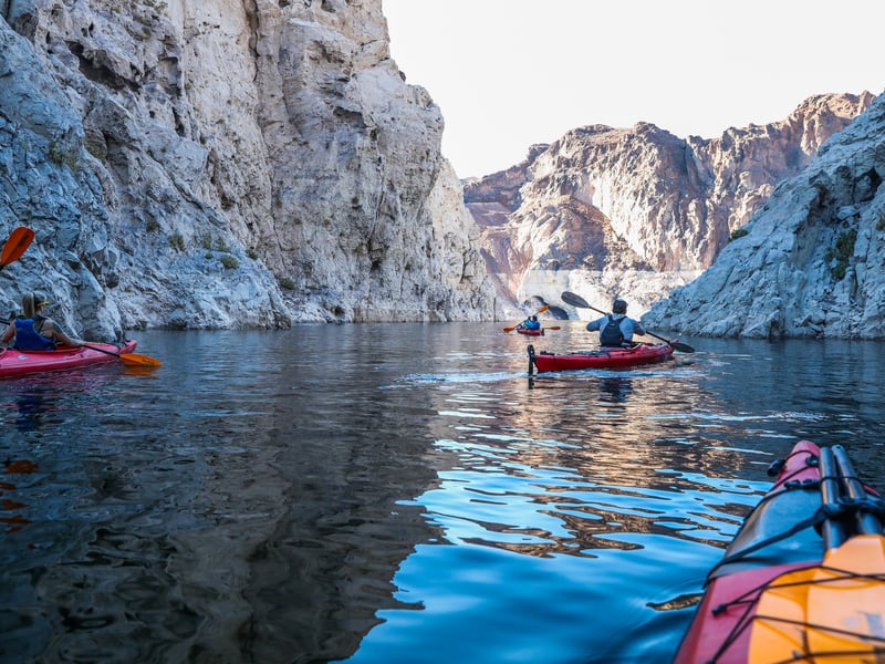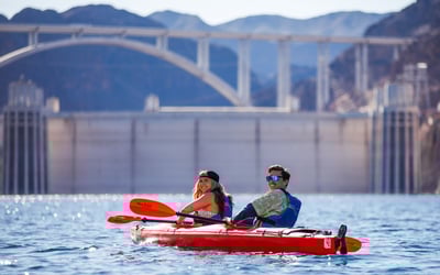Paddle Lake Mead to the front of Hoover Dam on a guided kayak tour. Navigate slot canyons beneath 800 ft cliffs and take in views of the Mike O'Callaghan–Pat Tillman Memorial Bridge.