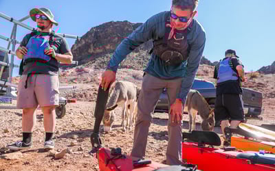 Guided Lake Mead kayak tour to Hoover Dam with shuttle, park entry, and lunch