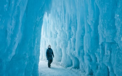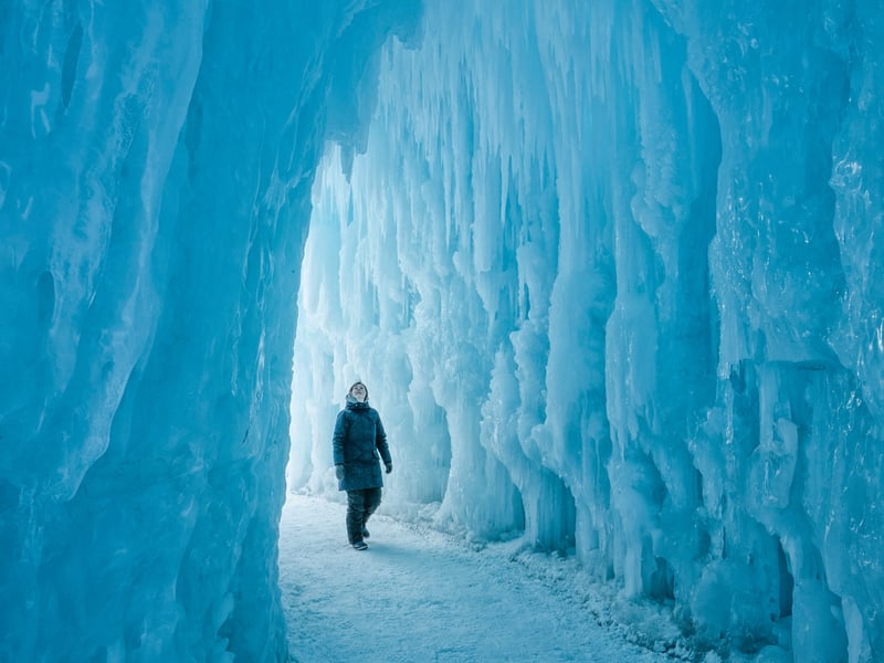 Explore dazzling ice slides and caverns on a family-friendly winter adventure