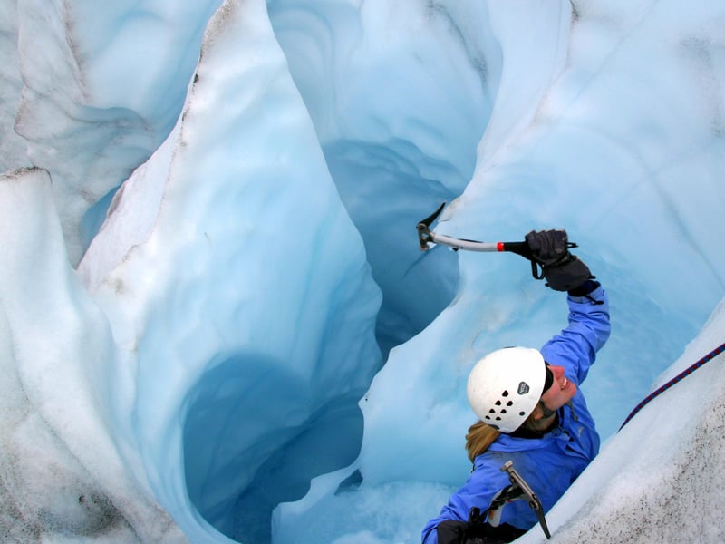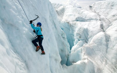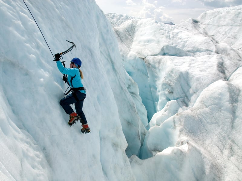 Climb beginner-friendly ice walls on a full-day glacier outing