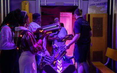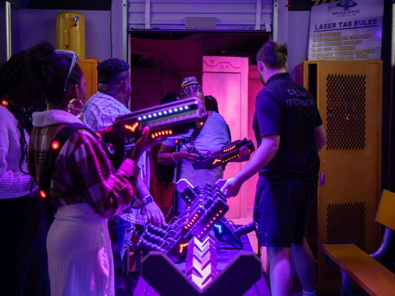 Immerse yourself in a thrilling laser tag arena for all ages and test your skills in an action-packed setting.