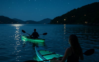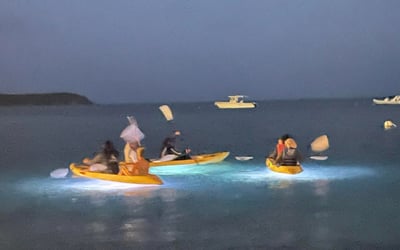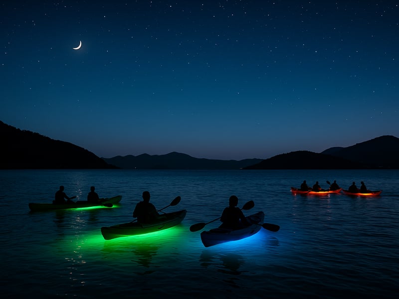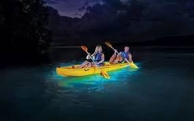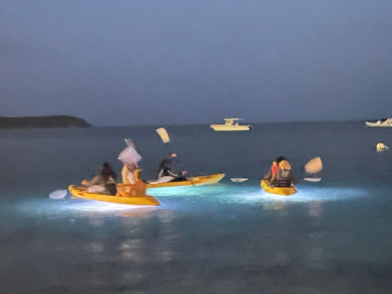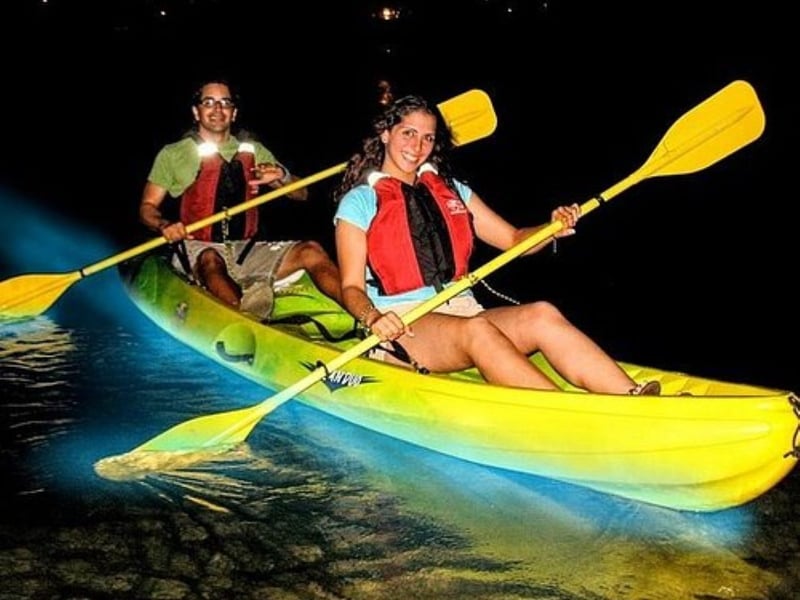 Glide across calm Caribbean waters on illuminated kayaks with a guided moonlight tour