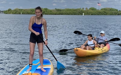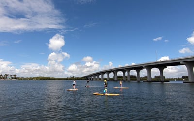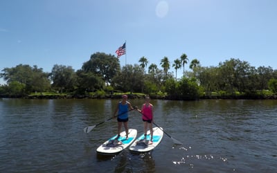 Rent a paddle board and set out on the Indian River Lagoon for an easy, self-guided adventure. Get a quick briefing and route tips before you launch from the dock.