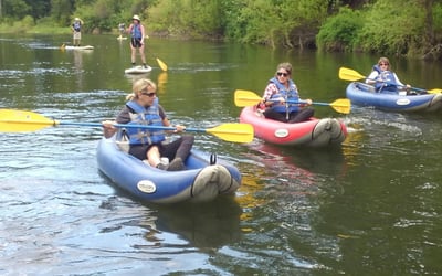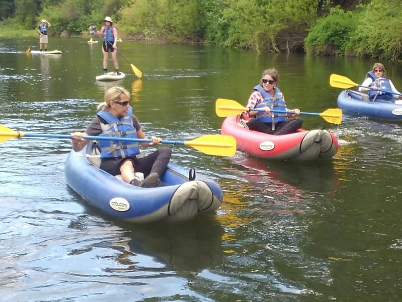 Paddle 2–4 miles on gentle rivers with gear included; rent or join a first-timers lesson