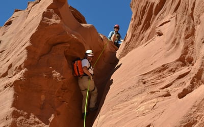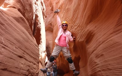 Short hikes lead to stunning narrows and fun slot canyon exploration. Enjoy a private guided canyoneering adventure with views toward Lake Powell and the Henry Mountains.