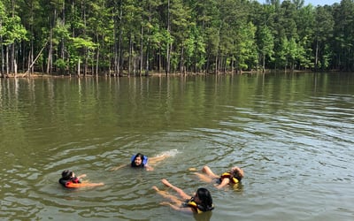 Enjoy a private captained boat ride with options to sightsee, swim, or try tubing on Jordan Lake