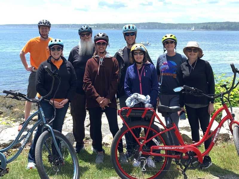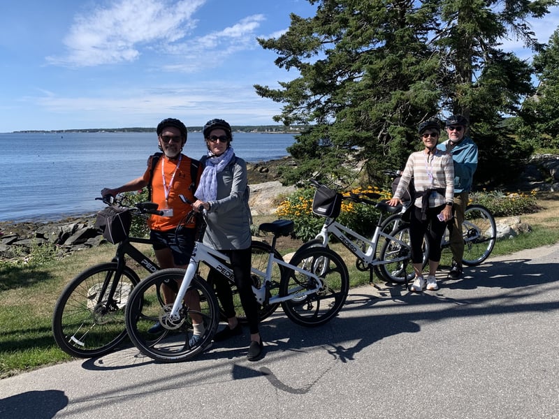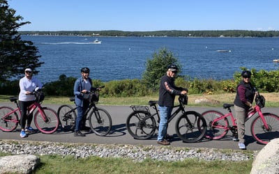 Enjoy electric-assist riding to coastal viewpoints, historic sites, and a local art studio in Boothbay Harbor