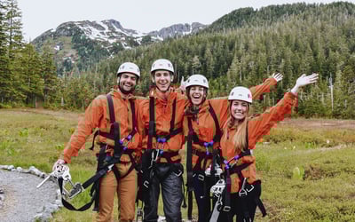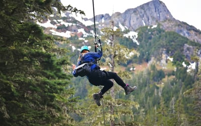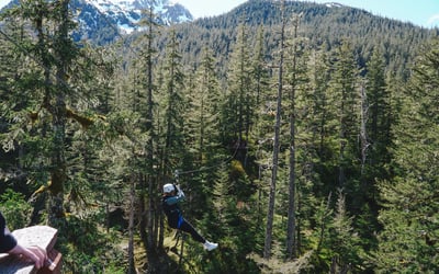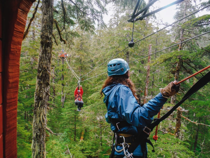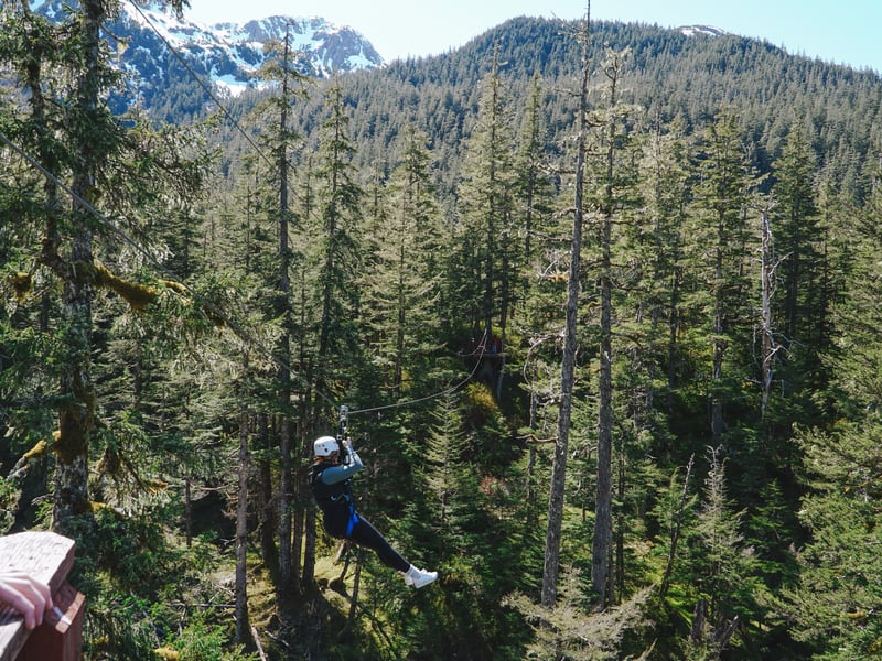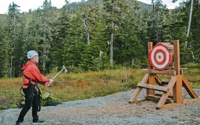 Feel the rush as you fly above Alaska's temperate rainforest on seven ziplines linked by tree-top platforms. Knowledgeable guides share ecology facts while you traverse an aerial suspension bridge and finish with an optional axe throwing challenge.
