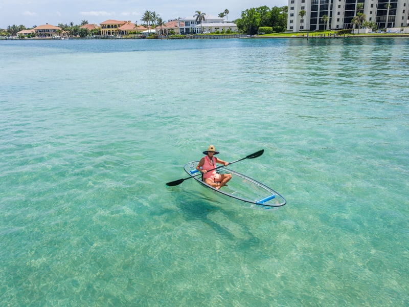 Paddle Jupiter’s transparent waterways in a clear kayak to view marine life up close