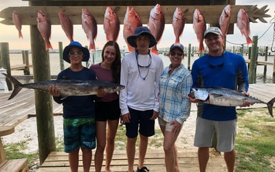 Head out on Jus Chilln for family-friendly fishing or a relaxing sunset cruise along the Gulf Coast. Trolling and bottom fishing target red snapper, amberjack, king mackerel, redfish, sheepshead and shark.