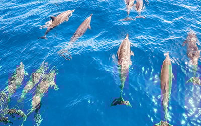 Sail the Ka'anapali coast to watch wild dolphins from a luxury sailing vessel. Learn about spinner, bottlenose, and pantropical spotted dolphins from on-board experts as you cruise.