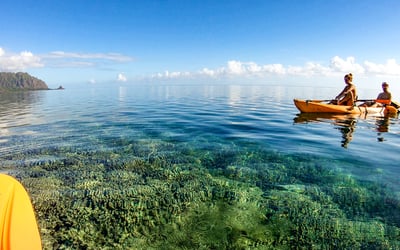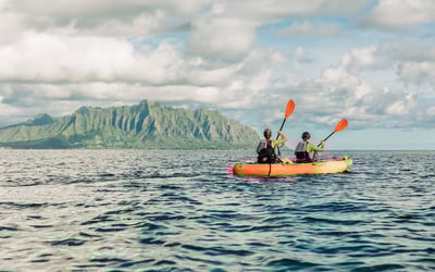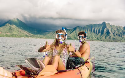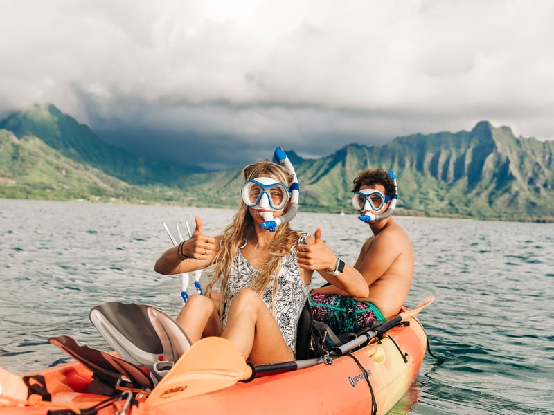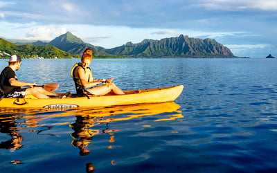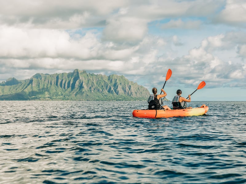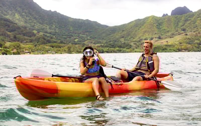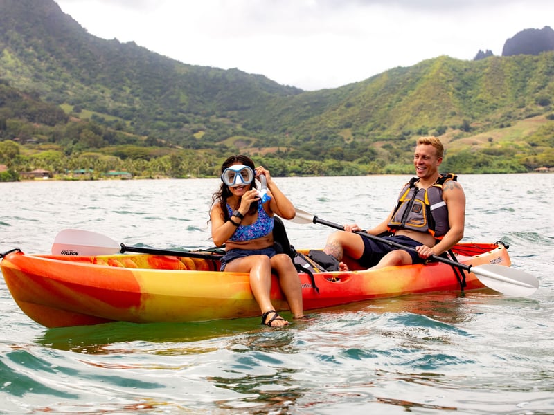 Explore Kaneohe Bay on a self-guided 4-hour kayaking and snorkeling outing. Pick up your gear in Kailua, then paddle over coral reefs at your own pace.
