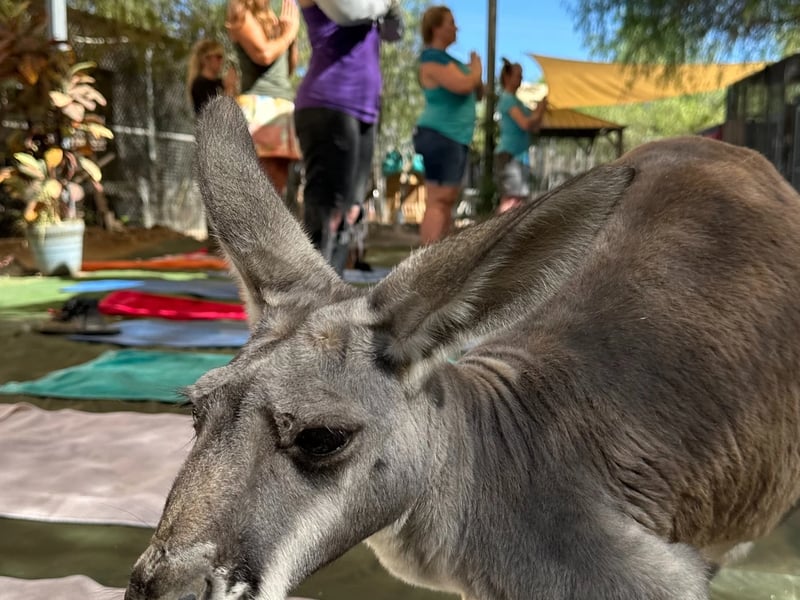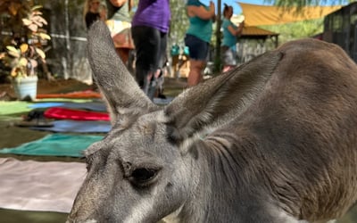 Stretch alongside free-roaming kangaroos and enjoy plant-based treats