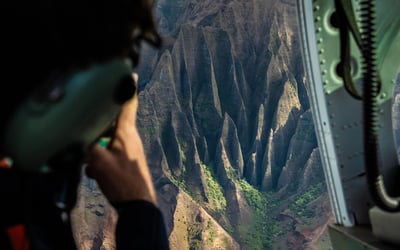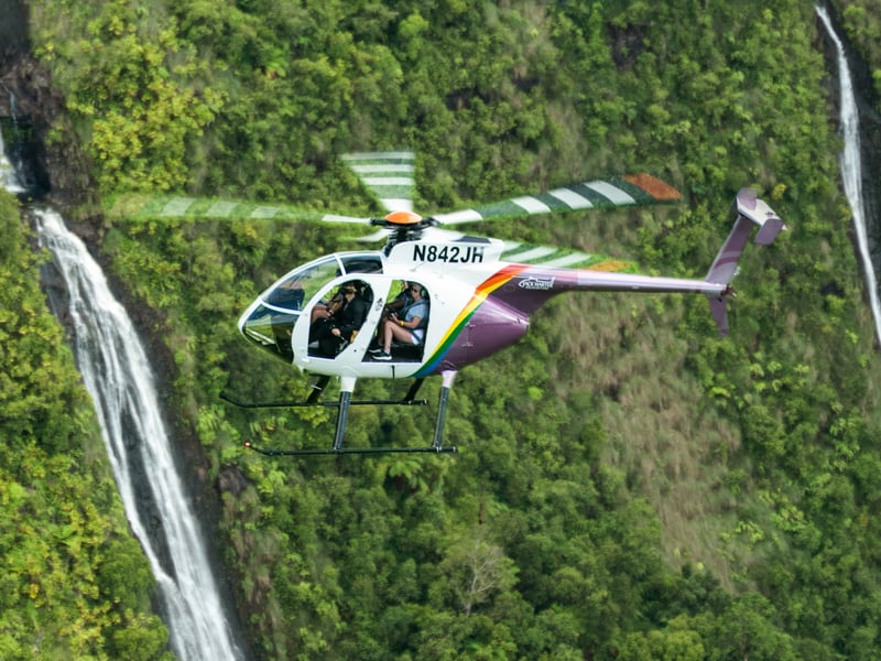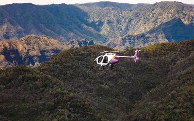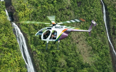 Experience Kauai on a doors-off MD500 helicopter tour. Feel the cool breeze as you fly past waterfalls, canyons, sea cliffs, beaches, and more.