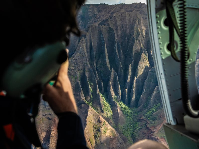 Feel the breeze on a 60–65 minute doors-off flight over Kauai’s waterfalls, canyons, and sea cliffs