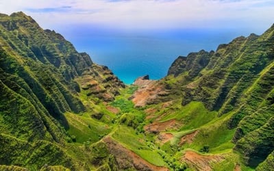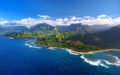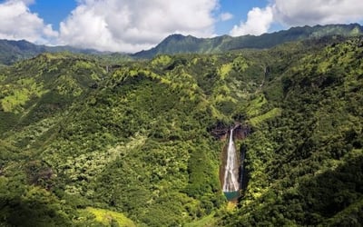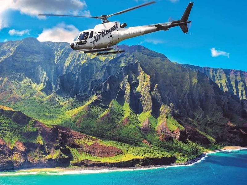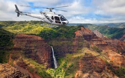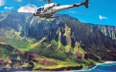 Enjoy a family-friendly 45-minute helicopter tour over Waimea Canyon and the Nā Pali Coast with enclosed doors.