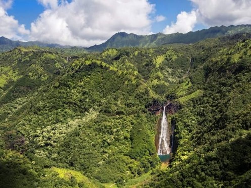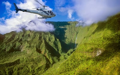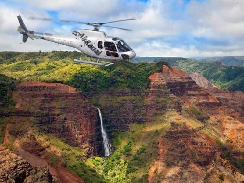 Soar above Kauai on a doors-on helicopter flight crafted for families and anyone who prefers a calm, enclosed ride. Enjoy sweeping aerial views of Waimea Canyon, the Nā Pali Coast and Manawaiopuna Falls during a narrated 45-minute tour.