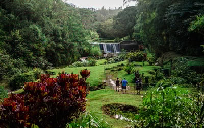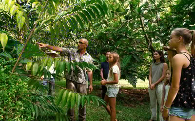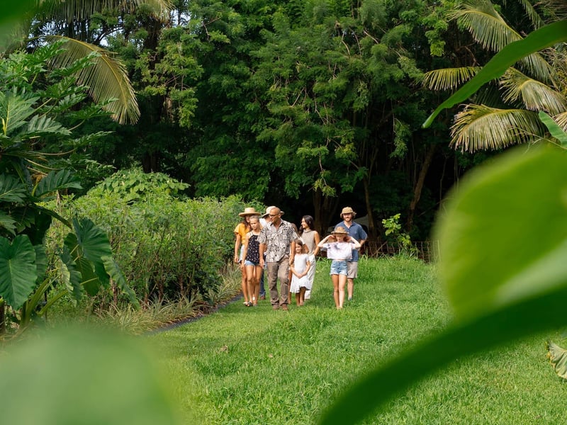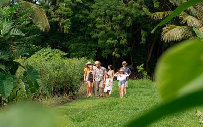 Explore a regenerative food forest and savor a 100% island-sourced family-style meal.
