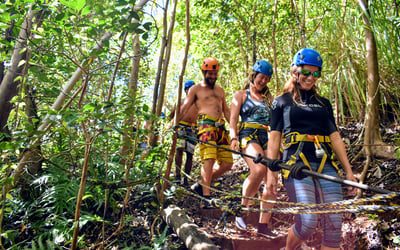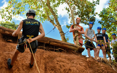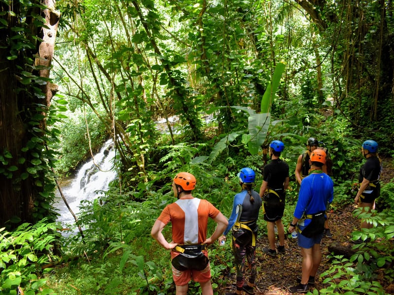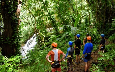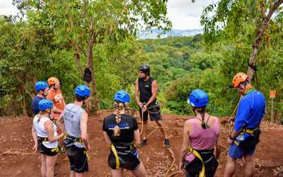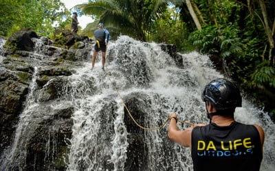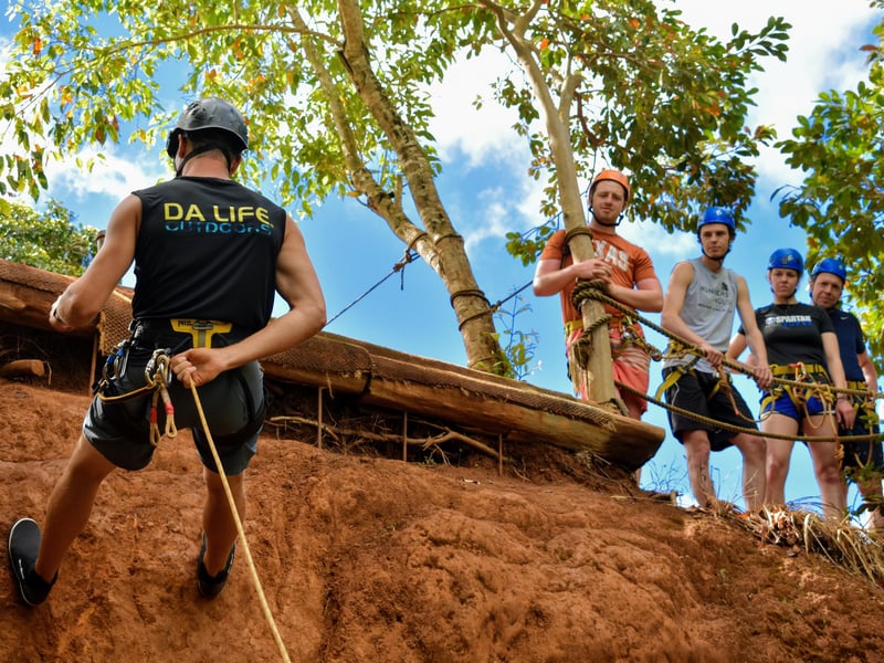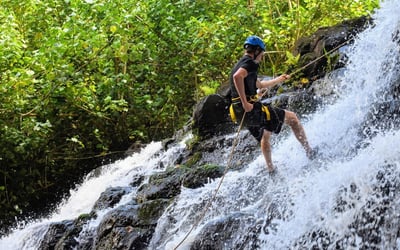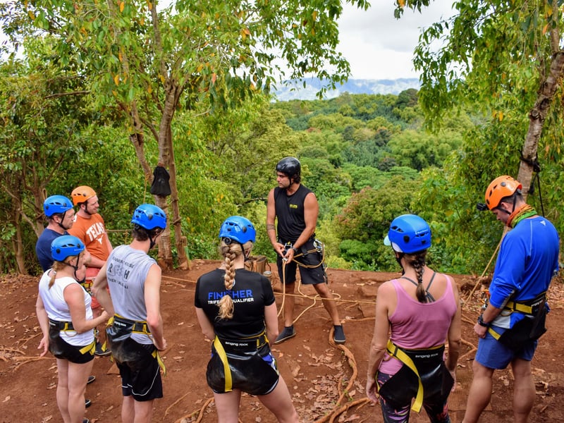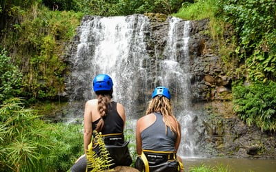 Experience a guided rappel on private property overlooking the Huleia watershed and Habbu Mountain range. Begin with a detailed safety lesson and practice before rappelling a 30-foot fall and a 60-foot fall, with refreshments provided.