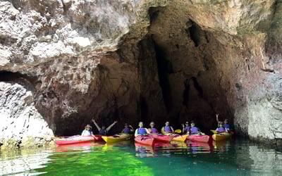 Paddle past volcanic canyon walls on a guided kayak journey to the glittering Emerald Cave. Spot desert wildlife, explore a historic overlook, and relax with a catered lunch on a secluded beach.