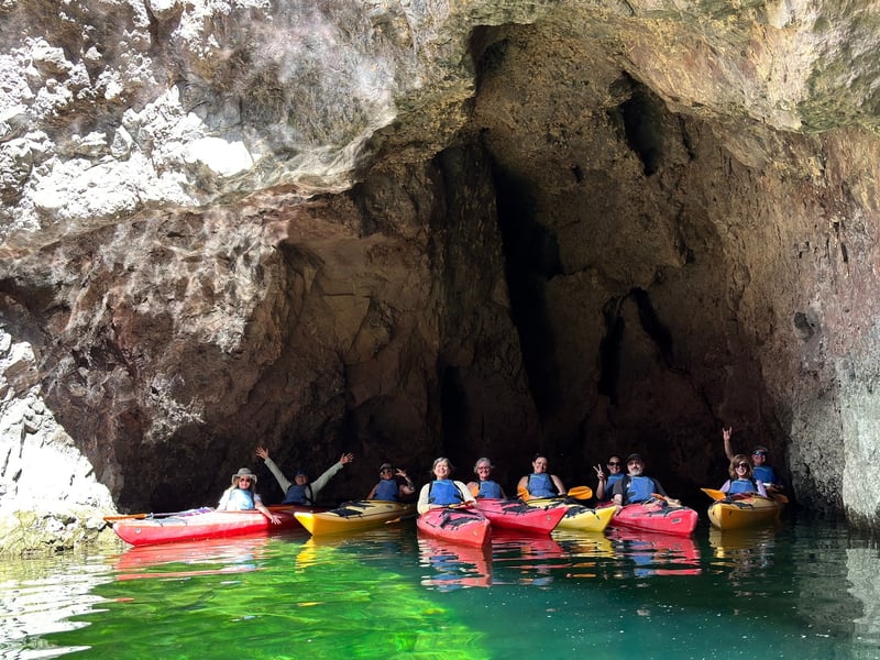 The guides here really make the experience special. Faith, Calvin, Soren, Ryan, Jeff, and Maggie all get enthusiastic shoutouts for being knowledgeable, professional, and genuinely passionate about sharing the area's ecology, geology, and history. Reviewers consistently mention feeling safe and well-cared-for, even complete beginners who'd never kayaked before. The tandem kayaks come equipped with rudders that make paddling easier, and guides adjust the pace to accommodate different skill levels while keeping the group together. The Emerald Cave tour is the clear favorite, with travelers calling it a highlight of their Vegas trips. The full-day option includes tasty lunches and plenty of snacks and water throughout. Logistics are smooth too, with clear pre-trip instructions, reliable hotel pickups, and helpful communication about what to bring. Many visitors add the Hoover Dam stop for a full-day adventure. The calm water and stunning scenery offer a refreshing escape from the Strip, and you might even spot bighorn sheep or eagles along the way.