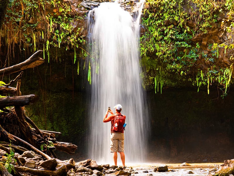 The rainforest waterfall hikes here deliver something truly special, with knowledgeable guides who consistently earn praise for making each trek memorable. Guides like Gail, Joel, Caden, Ali, Brian, and George come up repeatedly for their deep expertise about local plants, island history, and ecosystems. They'll point out wild guava and lilikoi for tasting along the way, and they clearly prioritize safety while maximizing the fun. Many reviewers mention cliff jumping and swimming under waterfalls as highlights, with guides providing patient encouragement for first-timers. The experience takes you to waterfalls on private property you couldn't access otherwise, and the terrain requires a moderate fitness level. You'll be walking across creeks, navigating slippery rocks and roots, and definitely getting wet, so proper water shoes with good grip are essential. Families with kids from age 8 and up have had wonderful times, and even rainy conditions don't seem to diminish the adventure. Several people wished they'd booked the longer tour option because the experience felt too good to end. The guides' training and local knowledge really set these tours apart from what you might find elsewhere.