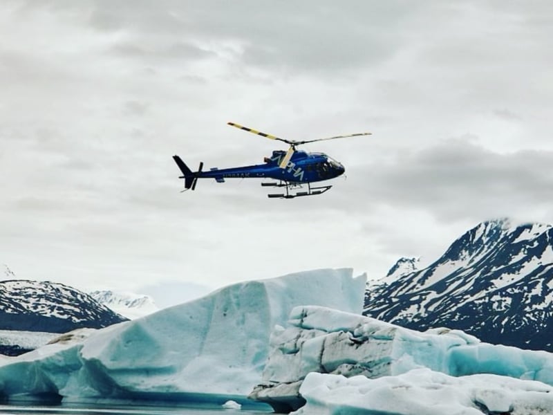 Fly above Kenai Fjords National Park, Resurrection Bay, and Bear Glacier on a 1-hour helicopter adventure. Land near massive ice and explore on foot with your pilot-guide.