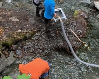 Ride a motorboat across Kenai Lake to Devil’s Canyon Mining Camp. Tour the camp by a glacial stream and learn to pan for gold—keep what you find.