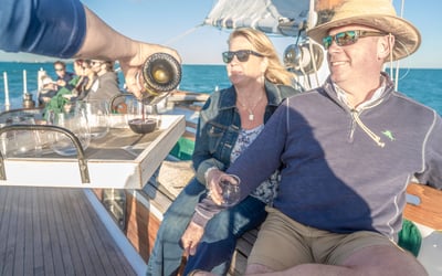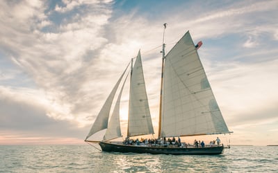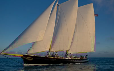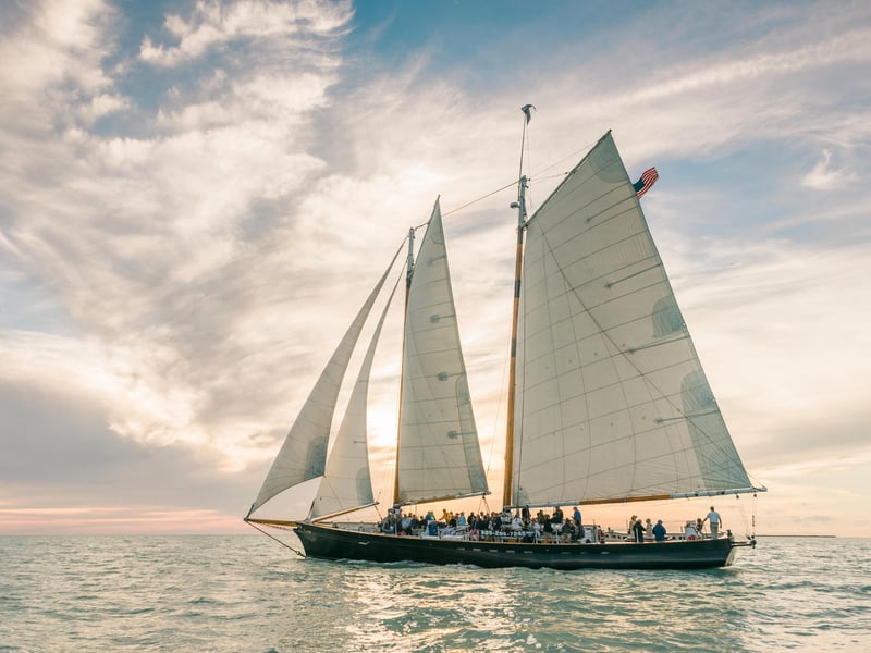 Sip complimentary champagne as you watch a legendary Key West sunset aboard the elegant Schooner America 2.0.