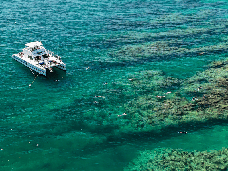 Snorkel two reef sites on a fast catamaran with gear and drinks included