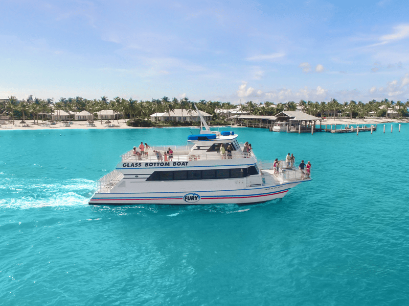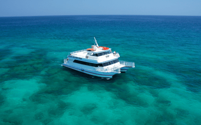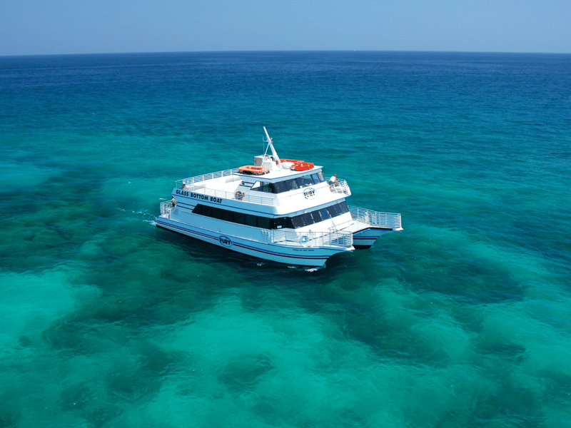 See coral reef life through glass viewing windows from an air-conditioned catamaran