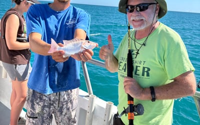 Fish the reefs for snapper and grouper with bait, tackle, license, and a helpful crew included