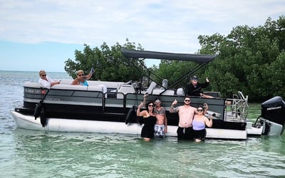 Two Bar Boats in Key West. One fits up-to-6 passengers, and the other fits up-to-16 passengers. 2 hours, and 4 hours trips along with a 2 hour Sunset. You can leave from the marina or select to be picked up at the only downtown public beach in Key West. Great captains and tours. Crazy stable. Don't worry about getting seasick. Two coolers built into the bar top, 12 bar seats and two bench seat up front.