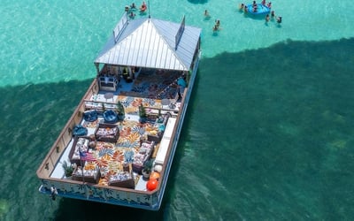 Cruise to an iconic sandbar aboard a spacious tiki boat for 3.5 hours