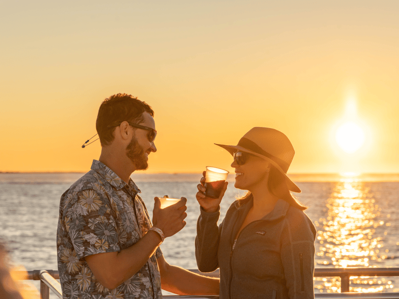 Sail into the warm evening light aboard the Sandie Cat and toast the sunset with unlimited well drinks, appetizers, and live music. Enjoy two relaxing hours on the water as Key West’s skyline glows gold and pink.