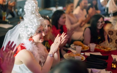 Be part of a hilarious murder mystery where guests play roles and solve clues