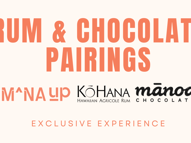 Sip and savor Hawaiʻi-made flavors in a guided pairing of Kō Hana Hawaiian Agricole Rum and Mānoa Chocolate. Discover craft from farm to bottle and bean to bar.