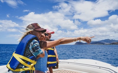 Maximum 6 guests, including children. Whale watching is available only in the winter season. BYOB is welcome; bring cans or plastic, no glass. When booking, include where you are staying in the notes section.