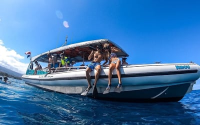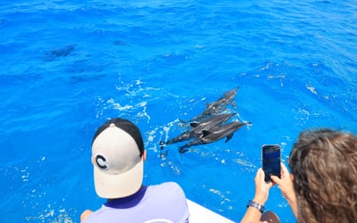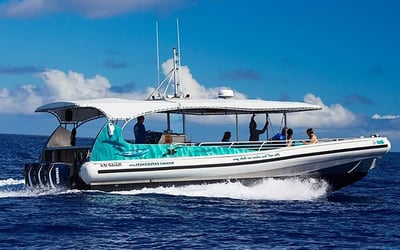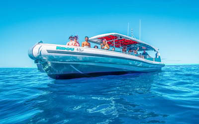 Join a 2-hour afternoon cruise along Kona's West Coast to watch dolphins and snorkel vibrant reefs. Ride a fast speedboat for clear views before swimming among turtles and colorful fish.