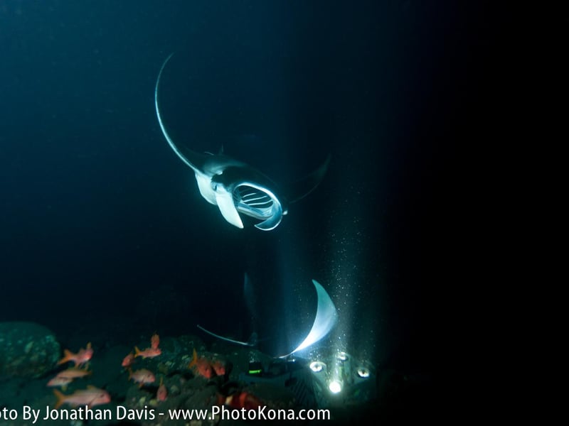 Watch a Kona sunset from the boat, then snorkel or dive at night to see manta rays up close with experienced in-water guides. Snorkel gear is provided, and you'll have light snacks, filtered water, and hot chocolate on board.