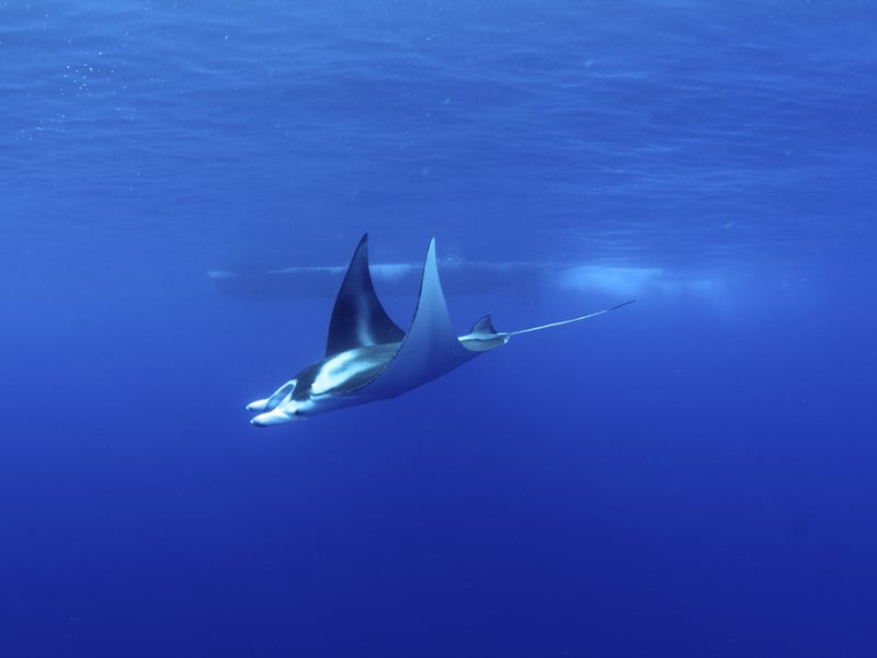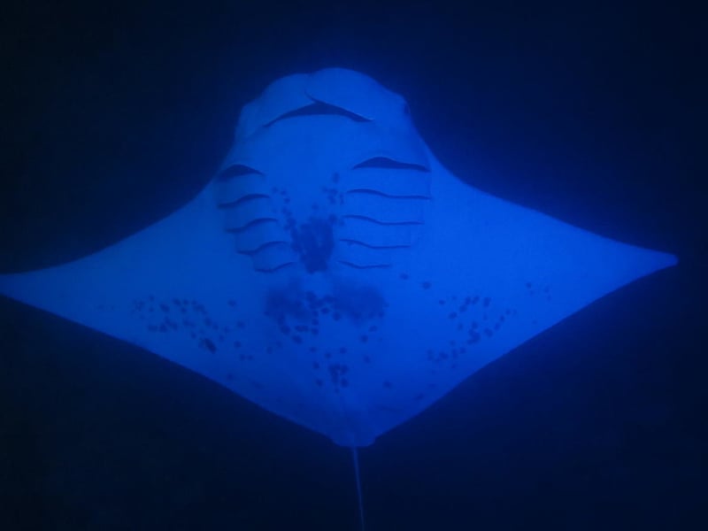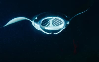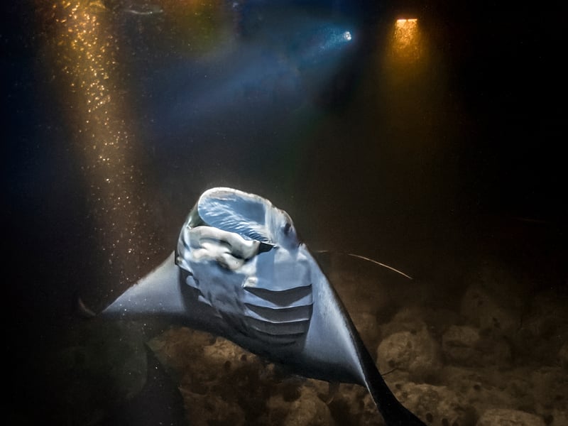 Snorkel with gentle manta rays at night off Kona. After a short boat ride, float above a light board as mantas feed below.